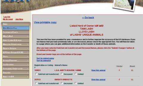 4) You will see a page as below with your whole herd listed where you can
